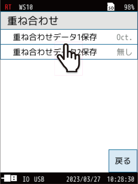 7「重ね合わせデータ1保存」または「重ね合わせデータ2保存」をタッチします。